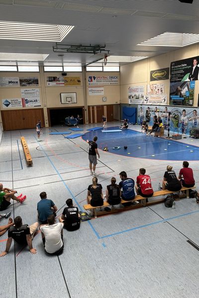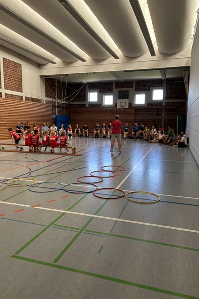 - Bänke, Hütchen, Reifen, Matten, Kästen (groß + klein), Leibchen, Bälle, Ballpumpe, … (je nach Bedarf der Referenten/Referentinnen)