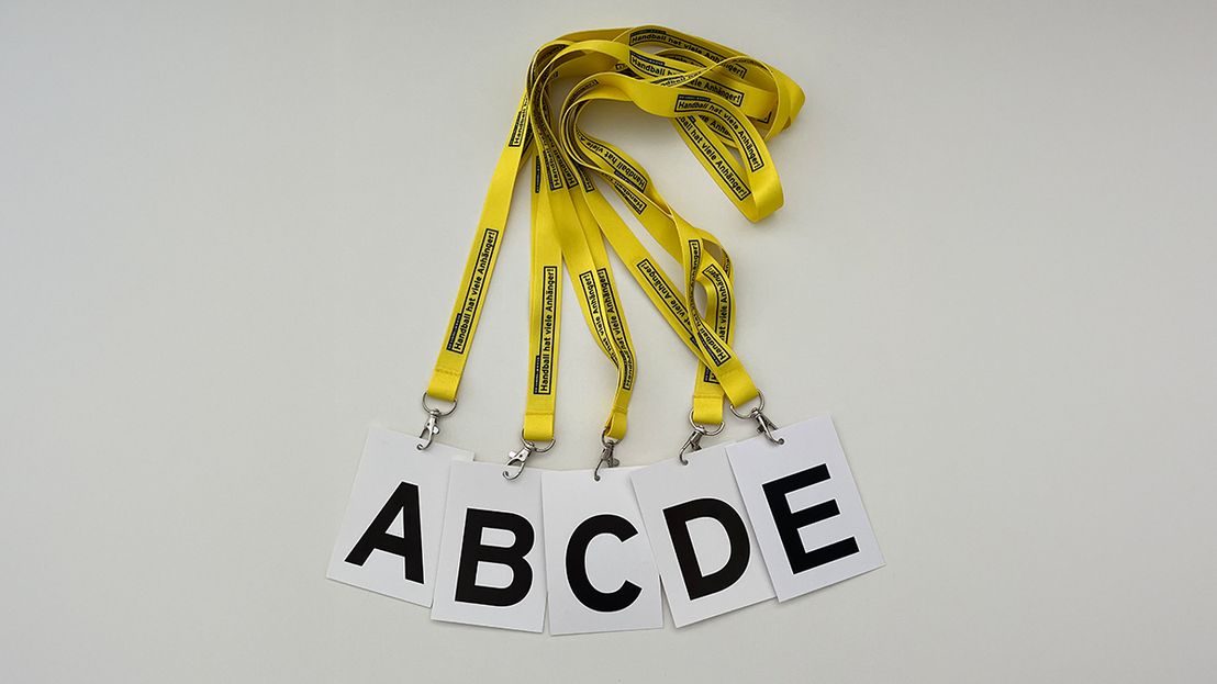 Jedes Set enthält 5 Karten mit den Buchstaben A–E, jeweils mit praktischem Schlüsselanhänger.