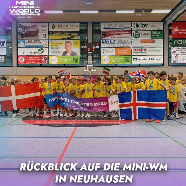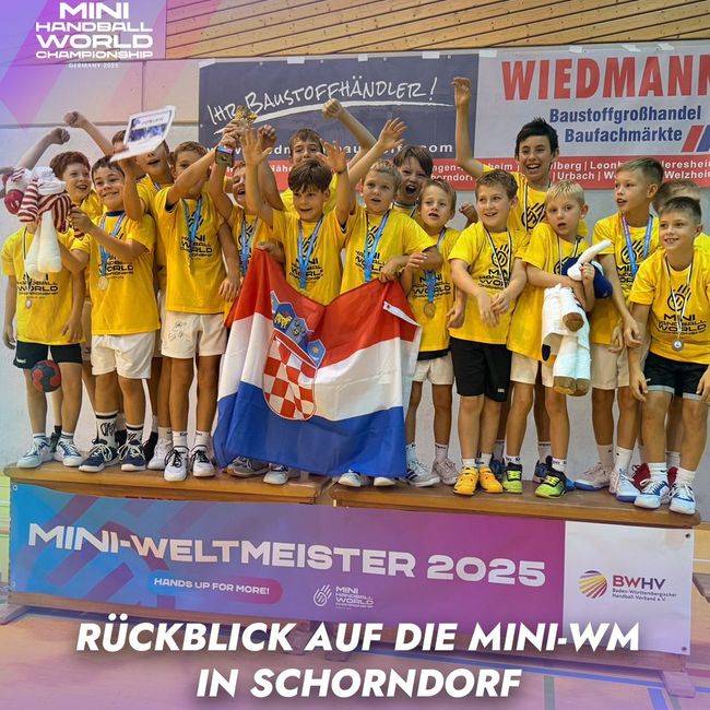 Unter dem Motto "HANDS UP FOR MORE" findet die Handball Mini-WM 2025 in Baden-Württemberg, in jedem der 8 Bezirke, zwischen September und November statt. Die Turniere sind für jeweils 32 Mannschaften ausgelegt und spielen den offiziellen Spielplan der Handball-Frauen-WM 2025 nach. Für die Gewinner der acht Bezirke gibt es am 29. November ein Finalturnier mit anschließendem Spielbesuch der Frauen-WM in der Porsche Arena in Stuttgart.