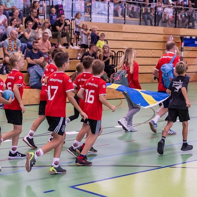 - Alle Kinder bekommen vor Ort ein Handball Mini-WM T-Shirt.