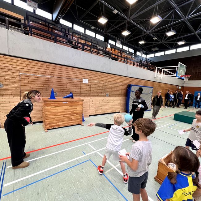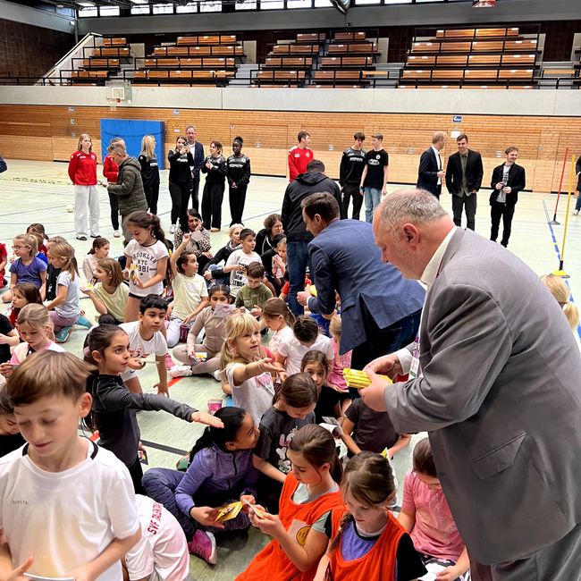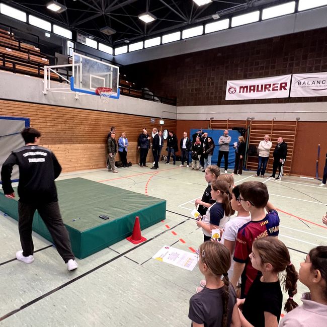 Im Anschluss daran verfolgten Gäste und Medienvertreter das Geschehen in der Sporthalle, wo die Kinder bereits mit großer Begeisterung den Hanniball-Pass absolvierten. Der Grundschulaktionstag, der in diesem Jahr bereits zum 15. Mal stattfand, ist inzwischen die größte Mitmachaktion des deutschen Handballs. Allein in Baden-Württemberg nahmen 2025 knapp 40.000 Kinder aus rund 600 Schulen teil. Unterstützt durch lokale Handballvereine sammeln die Grundschüler dabei erste Spielerfahrungen, stärken motorische Grundlagen und erhalten spielerische Einblicke in eine der beliebtesten Mannschaftssportarten des Landes.