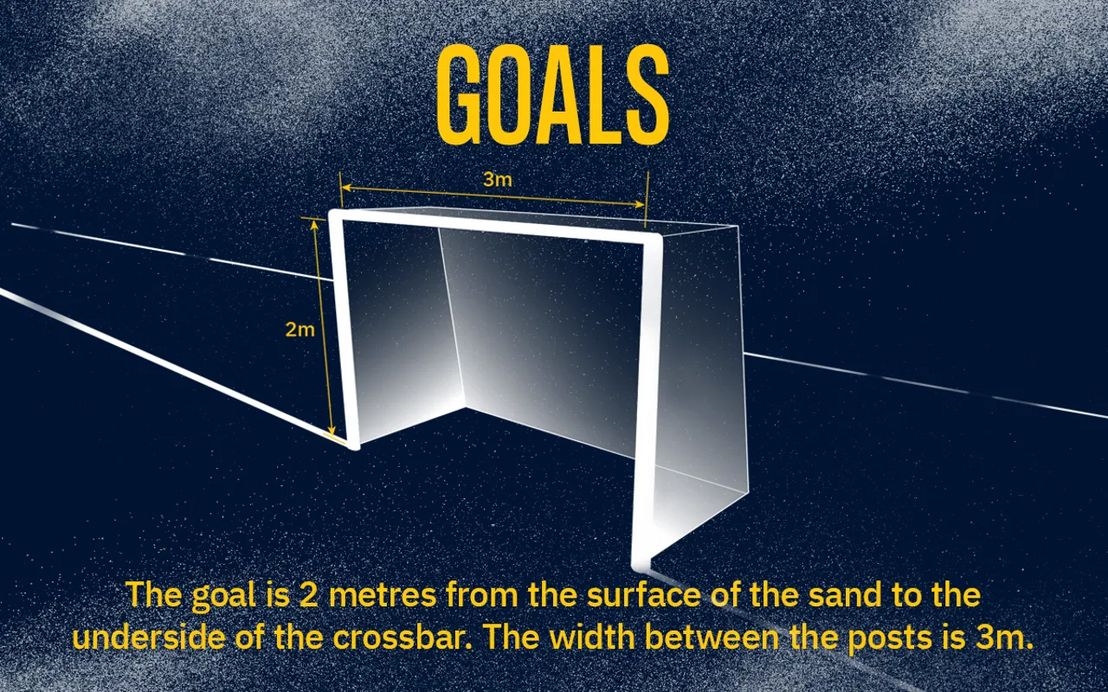 Beach Handball wird auf einem 12 Meter breiten und 15 Meter langen Spielfeld gespielt. Auf beiden Seiten schließt sich ein Torraum von jeweils sechs Metern an. Am Ende des Torraums befindet sich auf jeder Seite ein Handballtor.